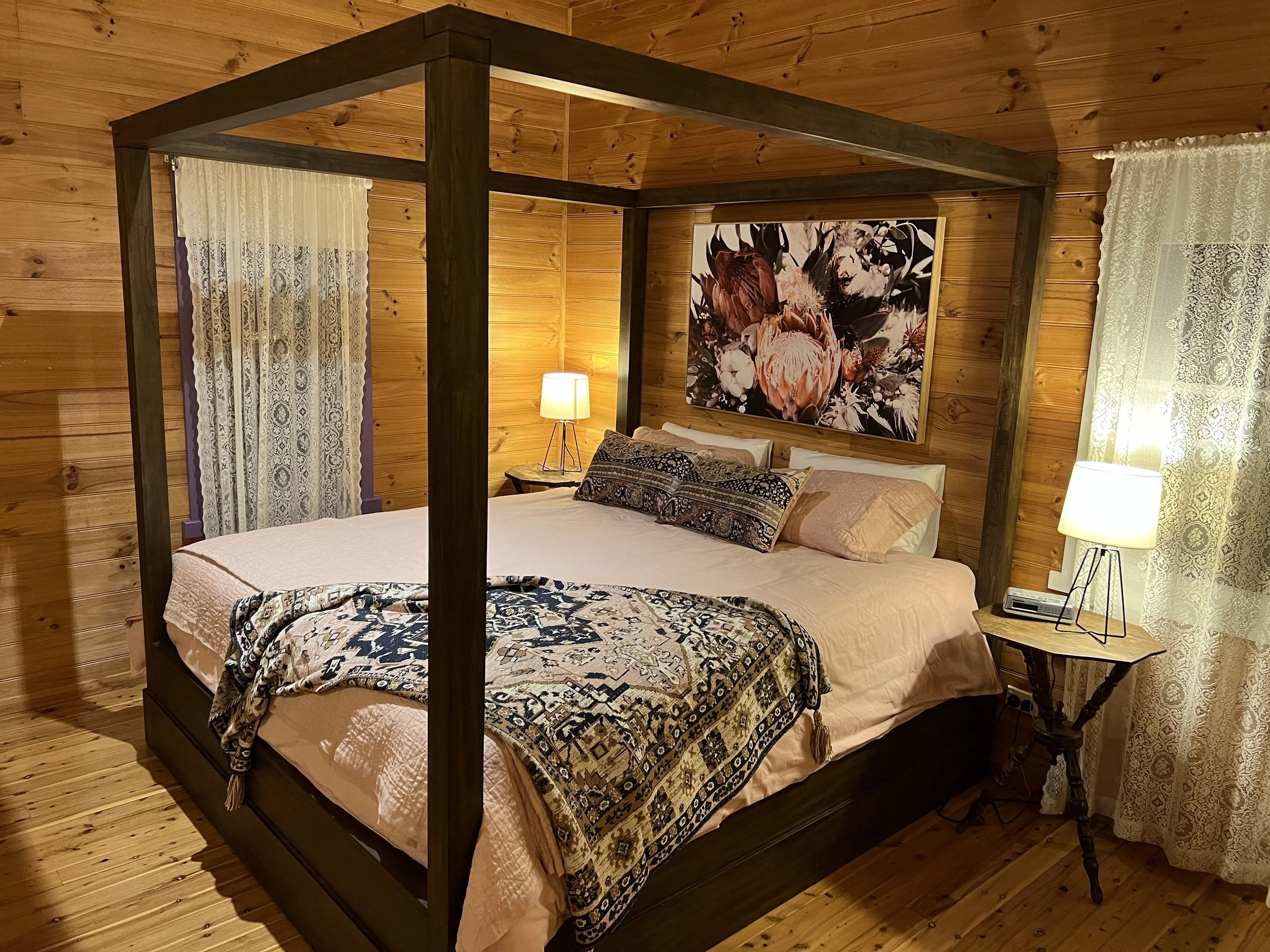 Enjoy the character and charm of yesteryear when you walk into this spacious open plan cottage. Lazy up in front of the comfort of a wood fire, indulge in a sensual large double spa, or cozy up in the 4 post King size bed. When you stay in ‘Serenity’, this tranquil and secluded cottage will ensure your holiday at Murray River Spa Retreat is a memorable experience.